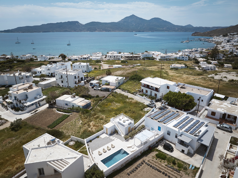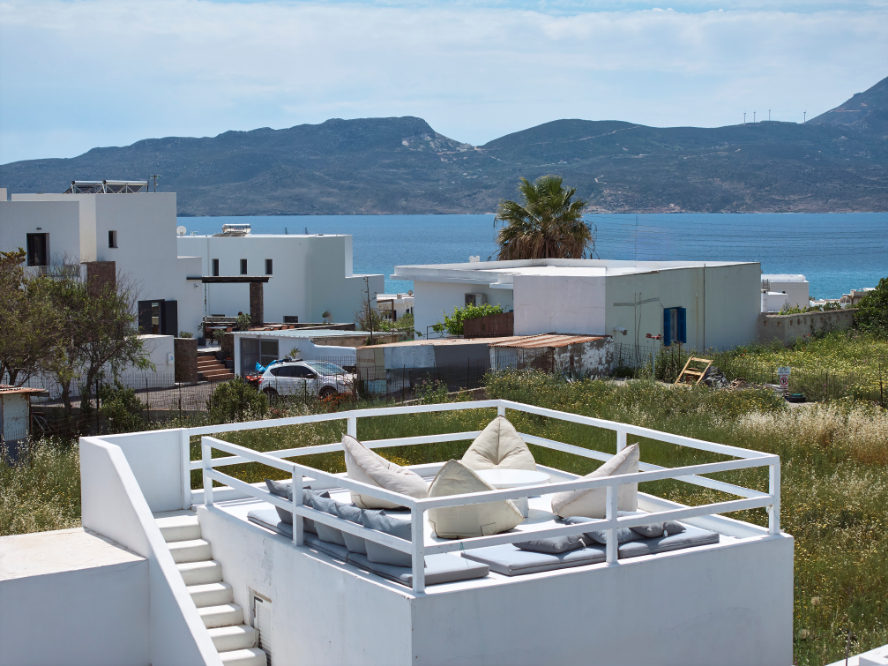Overlooking the picturesque port of Adamas, Ciel Milos is nestled into a quiet residential area just a short walk from the nearest beach. The neighborhood is lively as it is tranquil and safe, surrounded mostly by family homes of locals who gather to bask in the Greek summer. The area offers all the perks of a central locale, including grocery stores and an array of boutiques. Within a 5min walking distance you will find the family-friendly beach of Papikinou as well as a pier with rent-a-boat services that offer must-do island tours. Nearby places of interest include the Mining Museum, a World War II bomb shelter which has been turned into an Art Gallery and the Ecclesiastical Museum, as well as an array of charming cafes, bars and restaurants where you can enjoy local dishes.